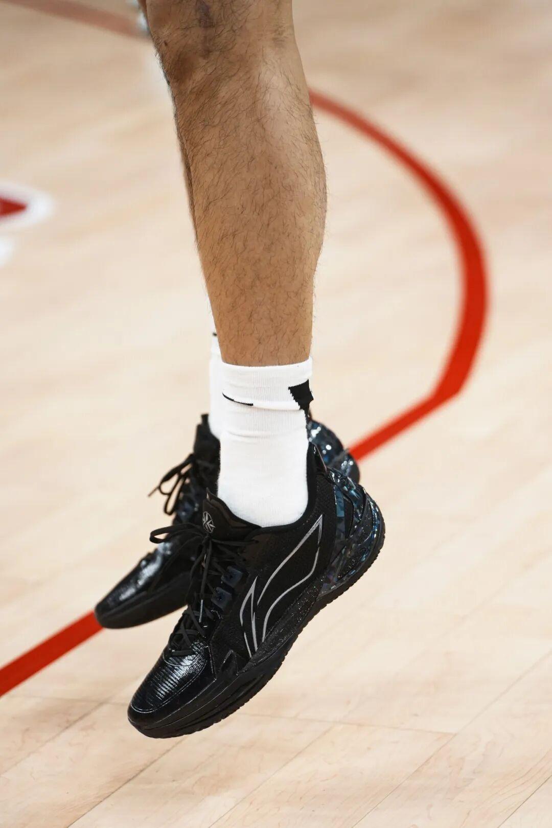上脚选择了一双李宁的利刃6V2黑曜石配色,虽然全黑看似低调但颇具质感,今晚小崔的表现又能否不“低调”呢?