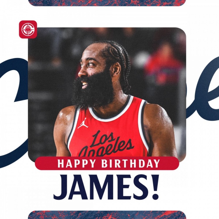 8月27日快船队球星詹姆斯·哈登迎来36岁生日,球队官方推特发布生日祝福。